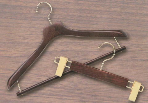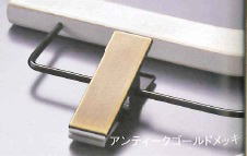 | 左 ジャケット用ハンガー(茶染め) W360~420mm T40mm フック:3.8mm玉付 ゴールドメッキ Wバー付き |