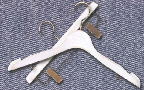 下 パンツ・スカート用ハンガー(白染め) W360 × T13mm フック:3.8mm玉付 アンティークゴールドメッキ |